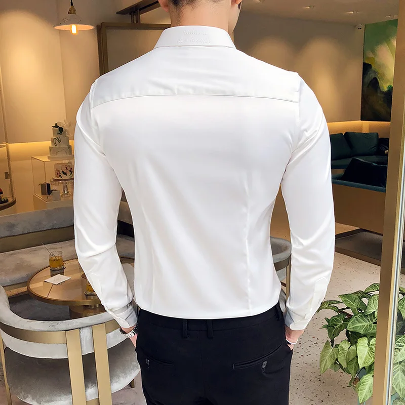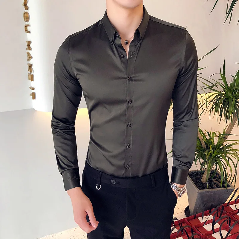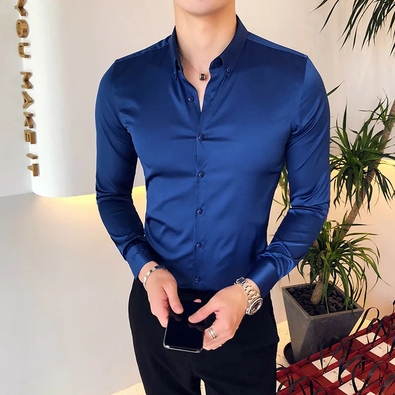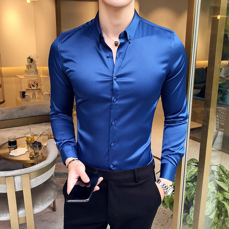 | casual slim fit long sleeve shirt | Tuxedo Shirts Male Clothing |