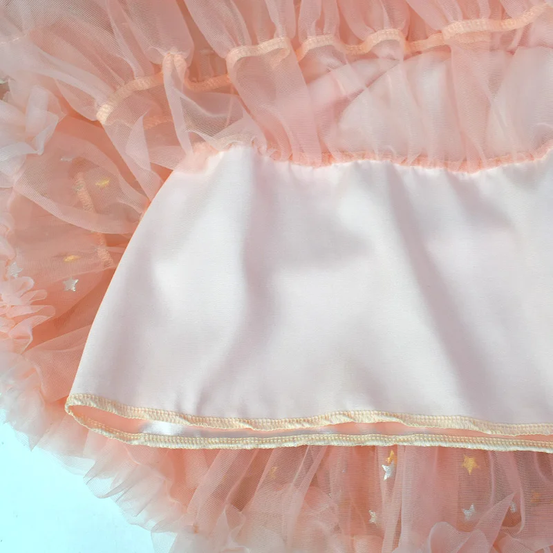 Material: cotton blend and polyester and tulle. Kids holiday birthday party performance skirt