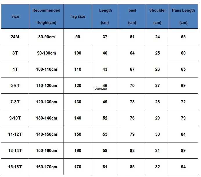 | 15-16T | 160-170cm | 170 | 61 | 85 | 32 | 94 |