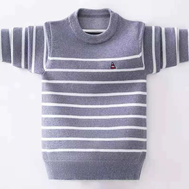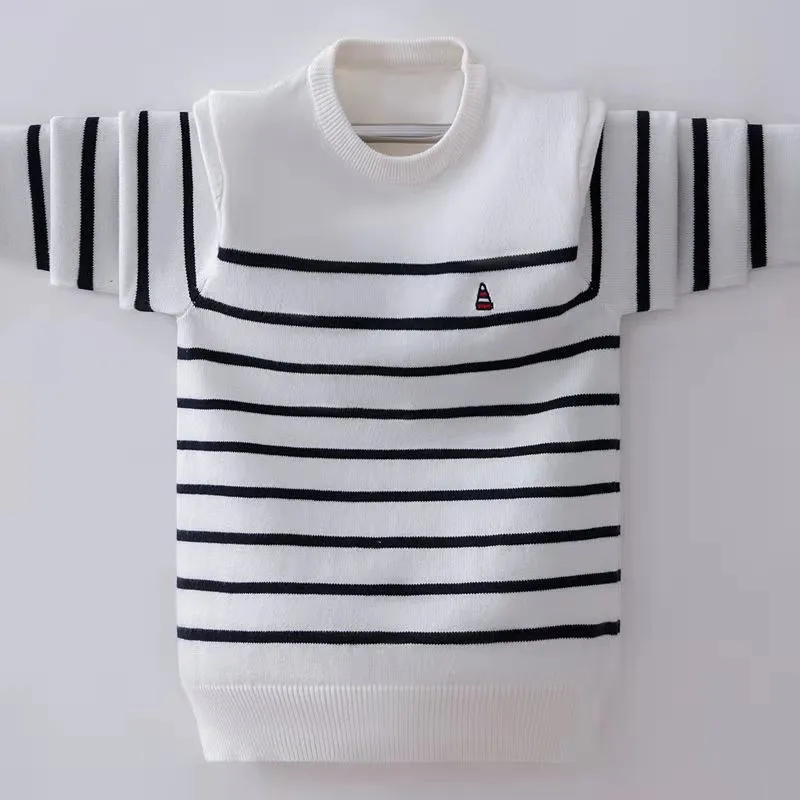 Kids Pullover Sweater Autumn Winter Striped Design Children Plus Velvet Knit Warm Outerwear Fo Teen Boys 110-170 Wear