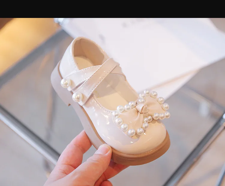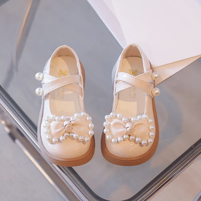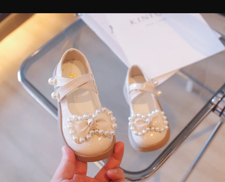 Kids Fashion Pearl Bow Knot PU Leather Princess Shoes For Girls Butterfly Baby Shoes Comfortable Flats zapatos de fiesta niña 1