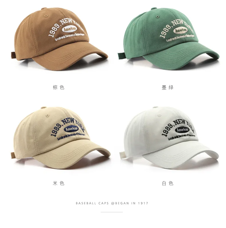 Men and Woman’s Baseball Caps Adjustable Casual Embroidered 1989 New York American Cotton Sun Hats Unisex Solid Color Visor Hats