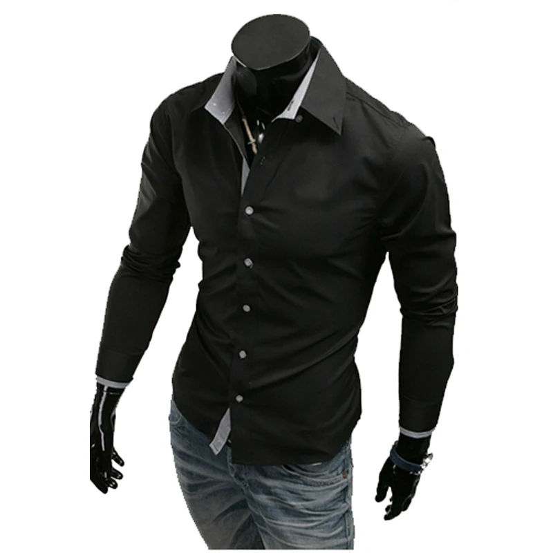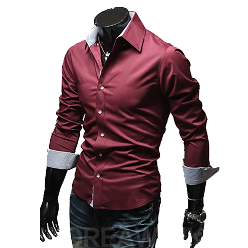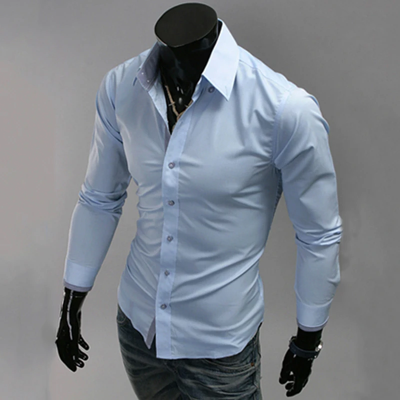 Mens Casual Shirts 2016 Hot Sale Mens Slim Fit Dress Long Sleeve Shirts Soild Male Social Shirts Designer Chemise Homme 3XL 25