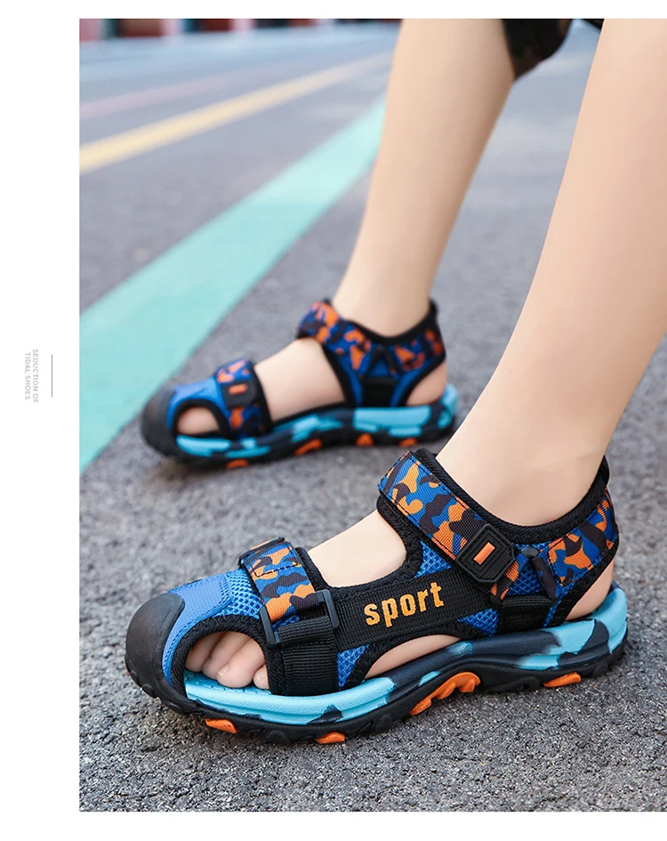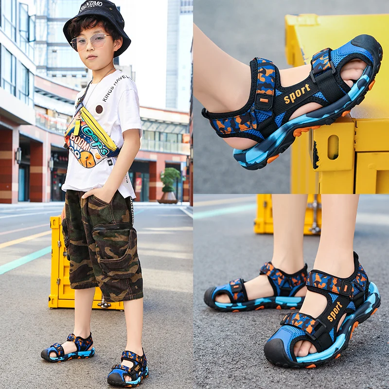 New 2023 Summer Beach Water Children Sandals Fashion Shoes Lightweight Non-slip Soft Bottom Shading Leather Boys Comfortable 5