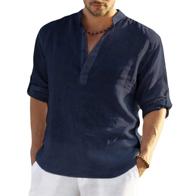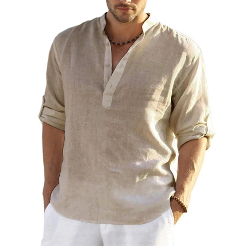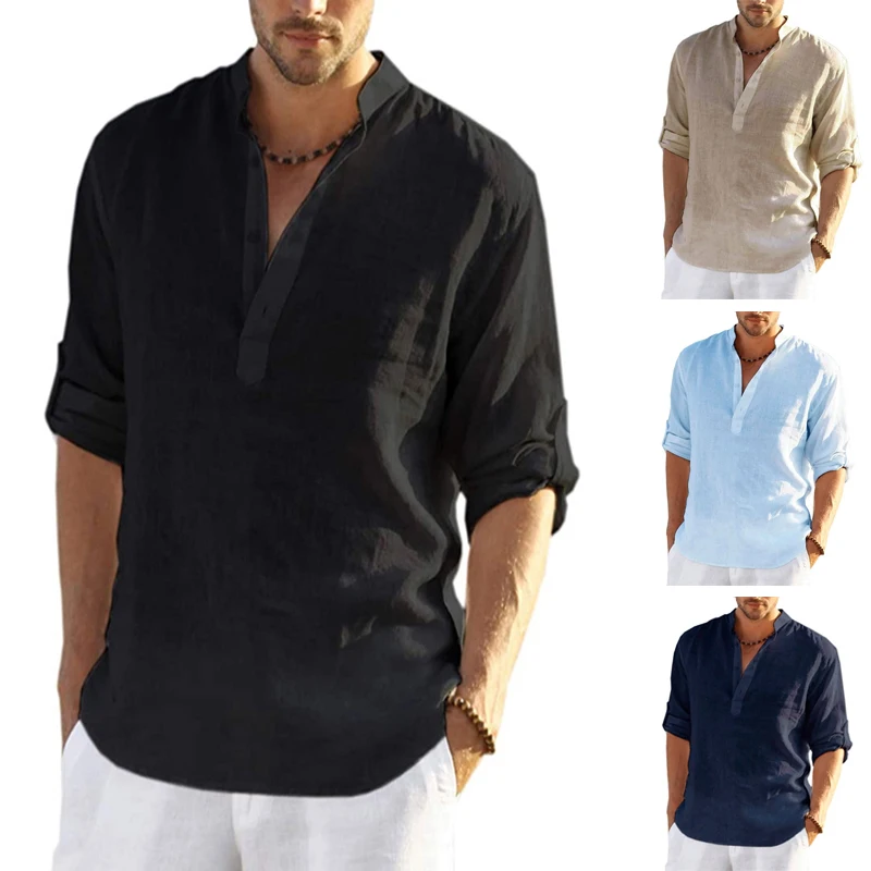 New Men’s Linen Long Sleeve Shirt Solid Color Casual Long Sleeve Cotton Linen Shirt Tops Male Breathable Size S-5XL