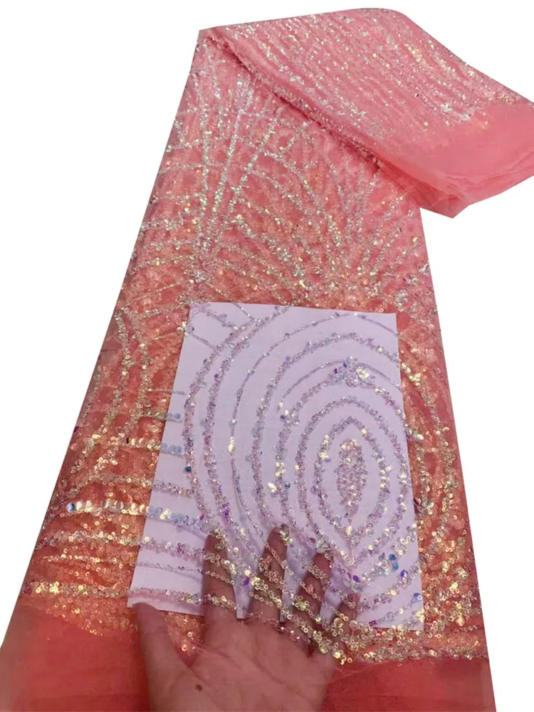 Nigerian French Sequins Lace Fabric Hot Sale Handmade 2022 Embroidered African Beaded Net Mesh Cloth for Women Dress ML35N552
