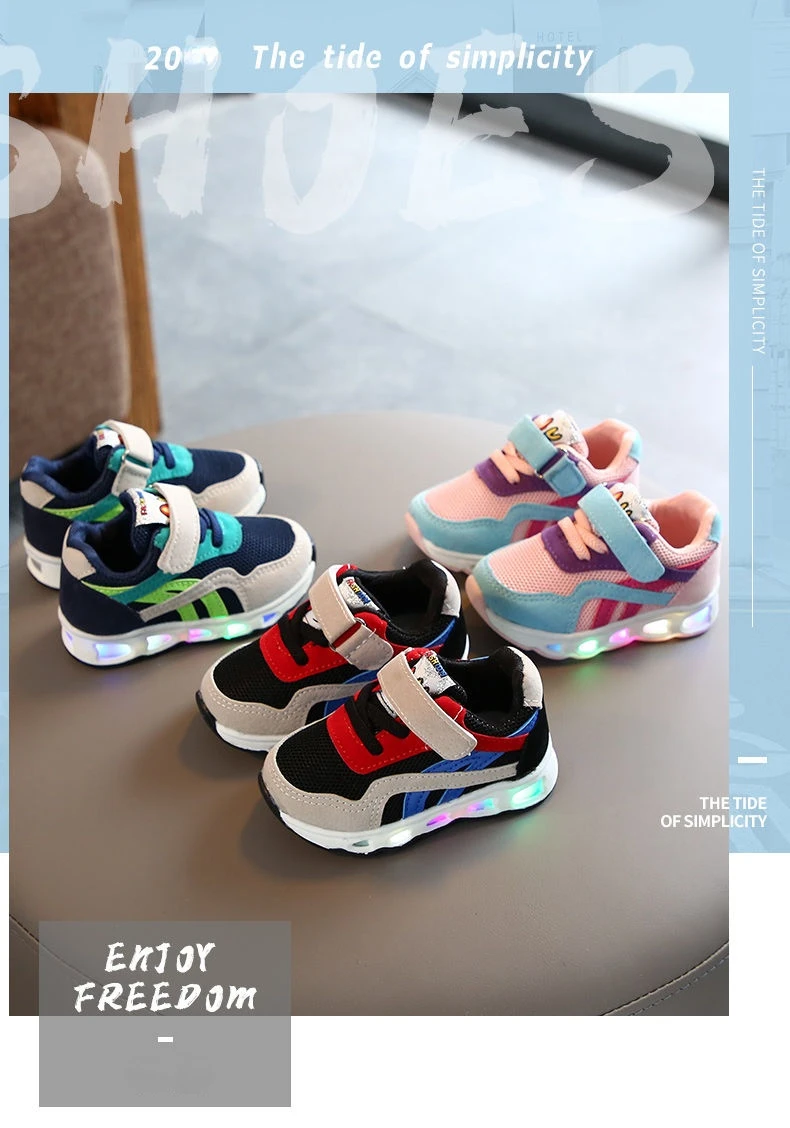 Size25-30 Trend New LED Children Glowing Shoes Baby Luminous Sneakers Boys Lighting Running Shoes Kids Breathable Mesh Sneakers 1