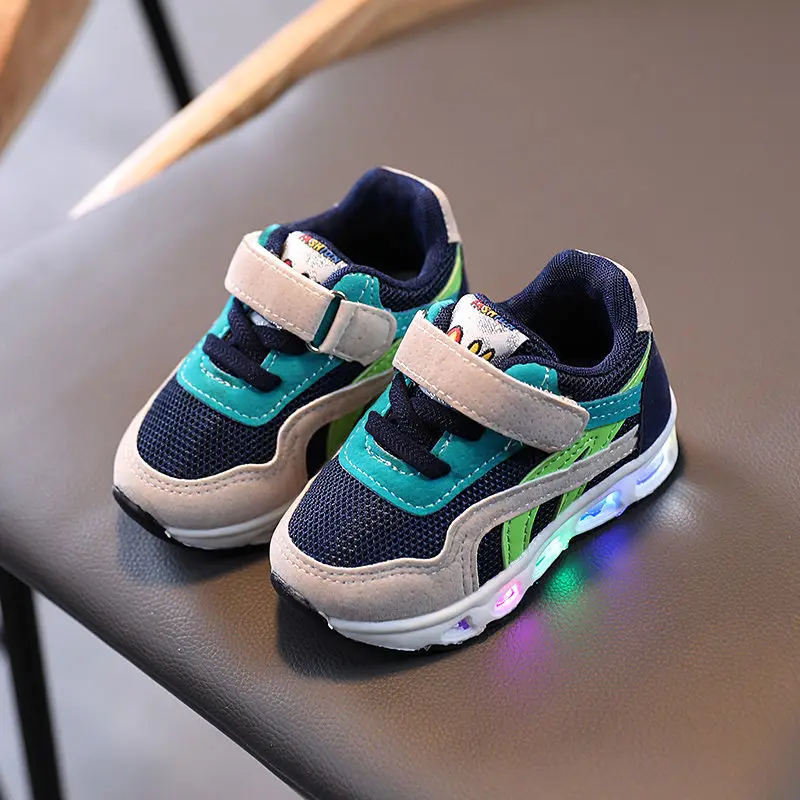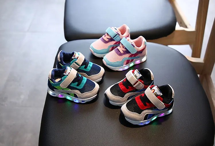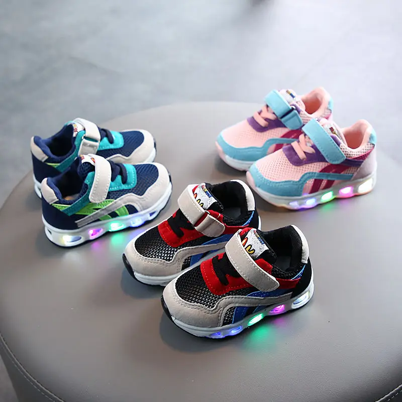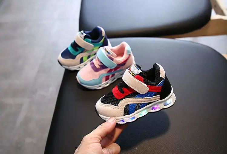 Size25-30 Trend New LED Children Glowing Shoes Baby Luminous Sneakers Boys Lighting Running Shoes Kids Breathable Mesh Sneakers