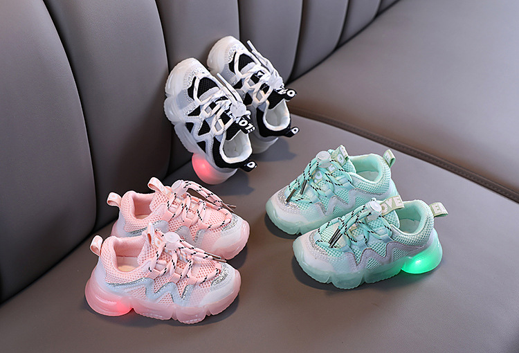 Size 25-30 trend New LED Children Glowing Shoes Baby Luminous Sneakers Boys Lighting Running Shoes Kids Breathable Mesh Sneakers