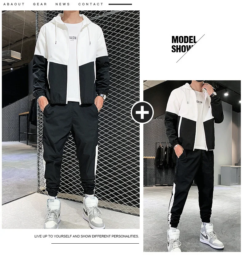 Sportswear Men Hooded Jackets+Pants 2 Piece Sets Mens Tracksuit Casual Joggers Set Hip Hop Spring Summer Running Sports Suit 5XL
