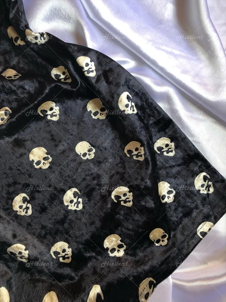 Be the first to review “Y2K Summer dress A-line Sexy Slim Spaghetti Strap Mini Hot Goth Black skull printed Vintage Streetwear Punk Bodycon Dress Women” Cancel reply